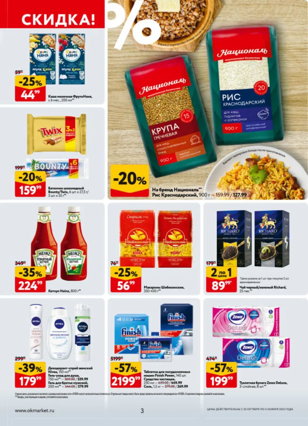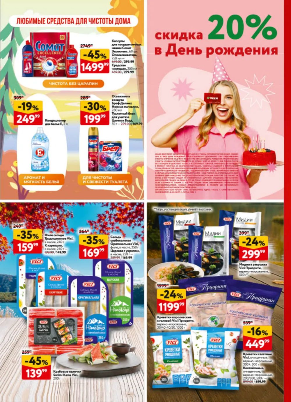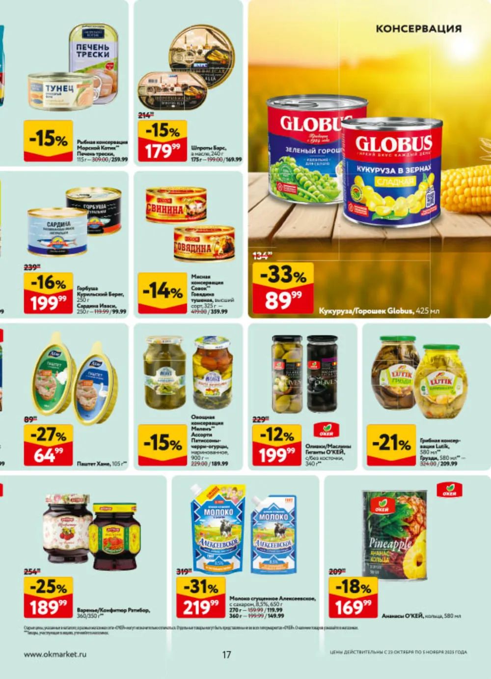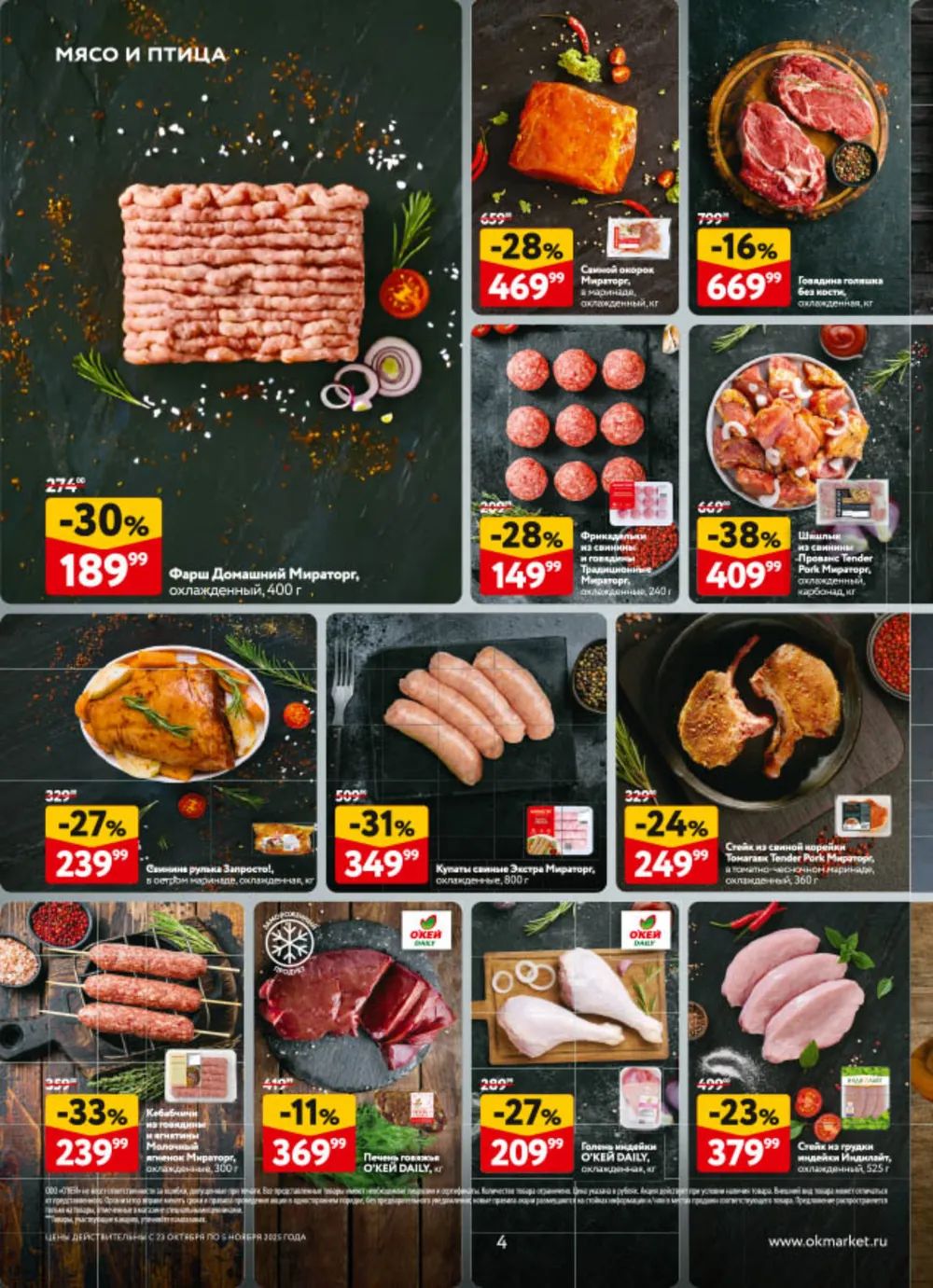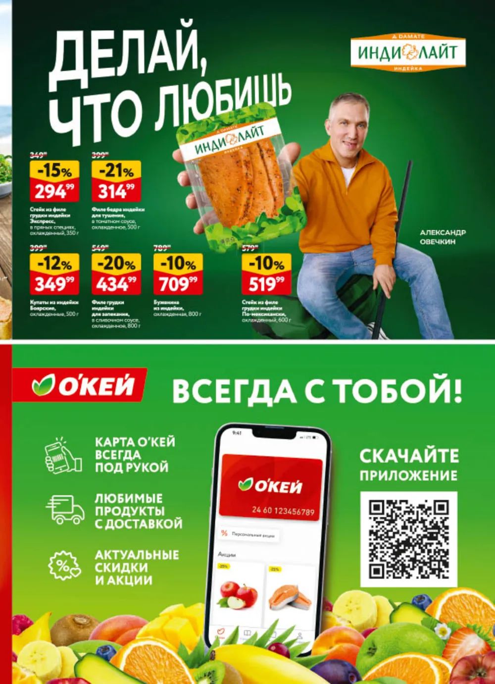 Каталог «Окей» представлен товарами всех видов: от продуктов питания до бытовой техники. На страницах каталога вы сможете получить информацию об акциях и скидках, увидеть фотографии продукции, цену товара и его описание. Каждый каталог товаров – это несколько десятков страниц, где в указанных разделах есть все, что угодно: продукты, посуда, одежда, бытовая техника и пр.